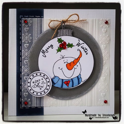 I made this card with a From the Heart Stamps digi called For the Birds. It's one of December stamps of the month. I love snowmen.